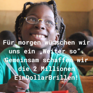 EinDollarBrille e. V. bildet in elf Ländern Menschen aus, die Brillen selbst herstellen und kostenlose Sehtests anbieten. So entsteht augenoptische Grundversorgung nachhaltig und auf Augenhöhe. Besonderes Augenmerk liegt auf Kindern, denn gutes Sehen ist die Grundlage für Bildung und Zukunftschancen. Durch die Brillenfertigung und den Vertrieb entstehen zudem lokale Arbeitsplätze – die gesamte Wertschöpfung bleibt in den Programmländern. 💪