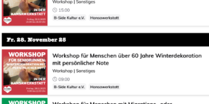 Ob Upcycling für Jugendliche, Winterdeko für Menschen über 60 oder ein Fahrrad-Reparatur-Workshop für Menschen mit Migrations- oder Fluchtgeschichte – die Hansawerkstatt im Gebäude der B-Side hat im November tolle Workshops …